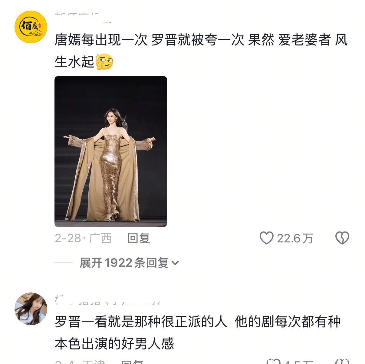 大众猜疑中,唐嫣罗晋这对青梅竹马恋人多次被提及,过去罗晋对外塑造了“宠妻狂魔”形象,很多人觉得唐嫣每次露面的好状态都是因为被罗晋宠爱的缘故,罗晋多次被认定是“爱妻者风生水起”,正派形象深入人心,但其实他也有好几次翻车的风波,不过都轻易的跨越过去,靠着及时回应和爱妻人设轻松解决。